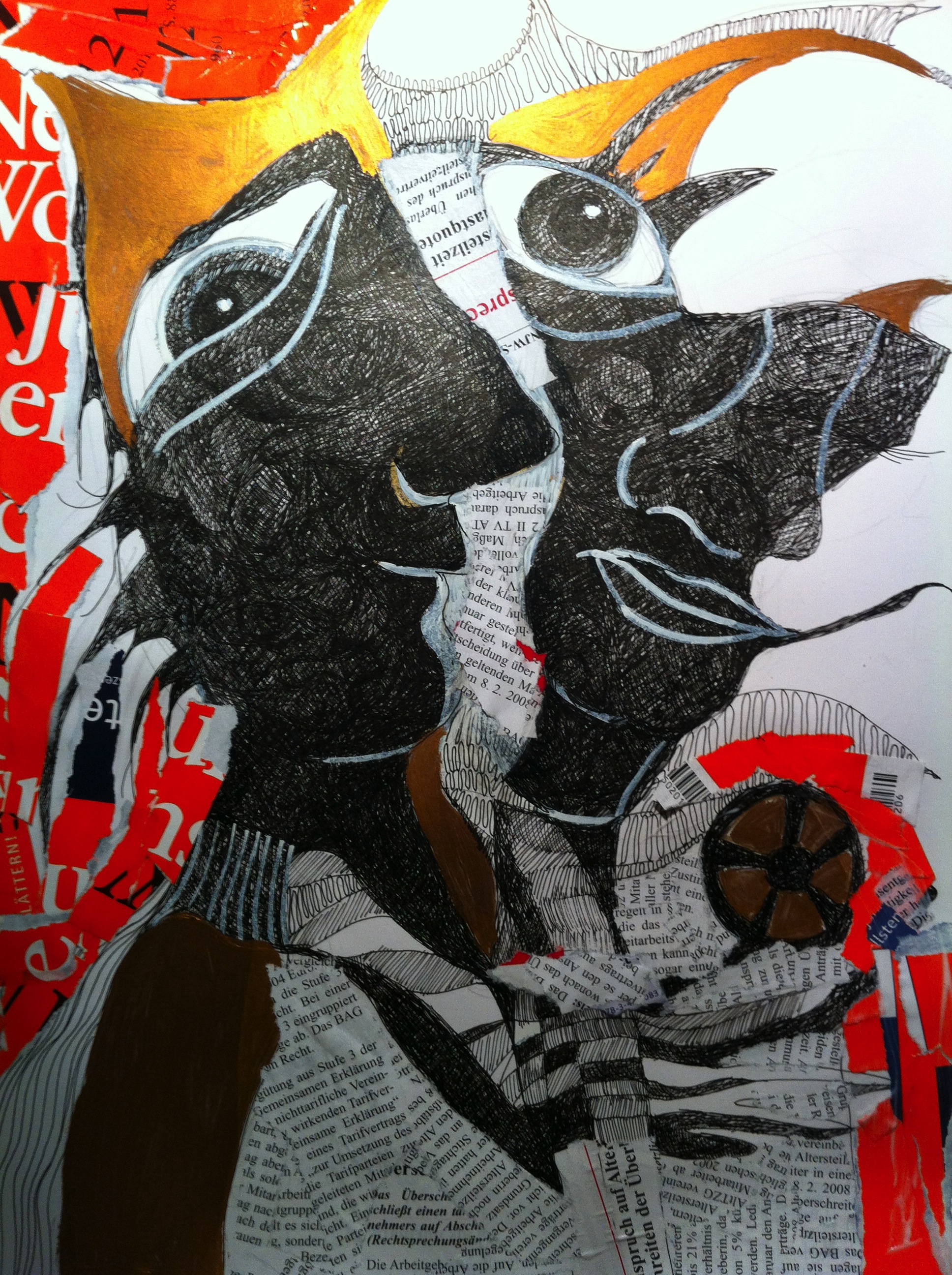 And when I come home in the evening and I open my very important briefcase out tumble bits of this and that, drawings on note paper, done while I was on the phone, creatures with big eyes while I was thinking about security of data transmission, one of my new wooden drawings “Watch out while you are being watched” over a quick coffee break. At home I don’t know how to archive the mass of these bits and pieces anymore, nor where to store the heap of casual paintings done at night, JUST because, and during every free moment and I feel like I imagine the husband must be feeling who doesn’t quite know whether he is cheating on his wife when he spends time with a female friend his wife is well aware of or whether he is cheating on said female friend when spending quality time with his wife.